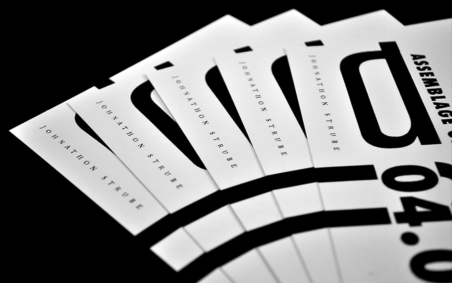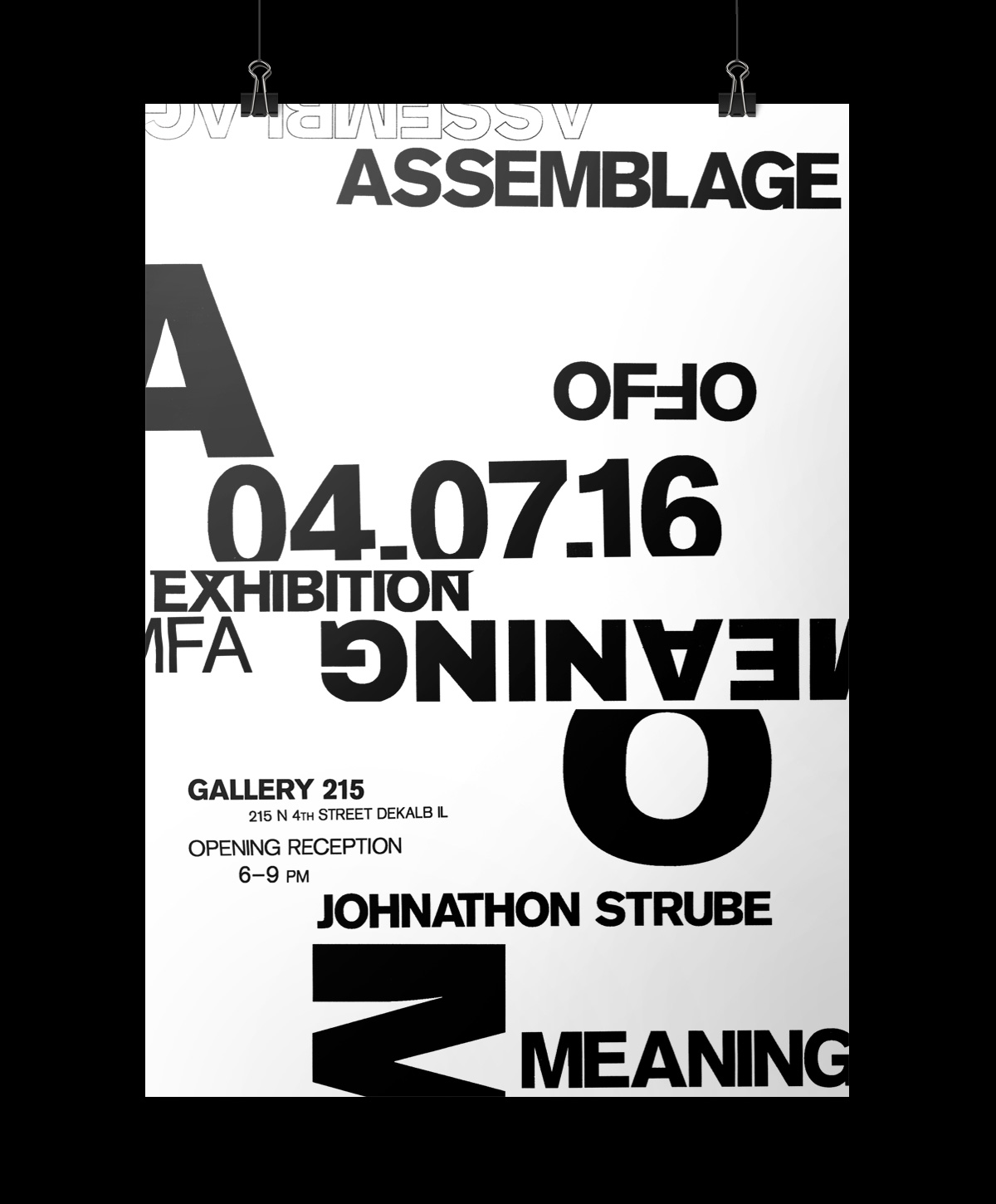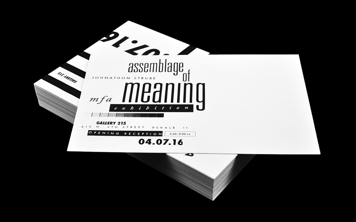 Promotional materials created in one color for a one person exhibition to interpret assemblage concepts, processes, and artifacts.