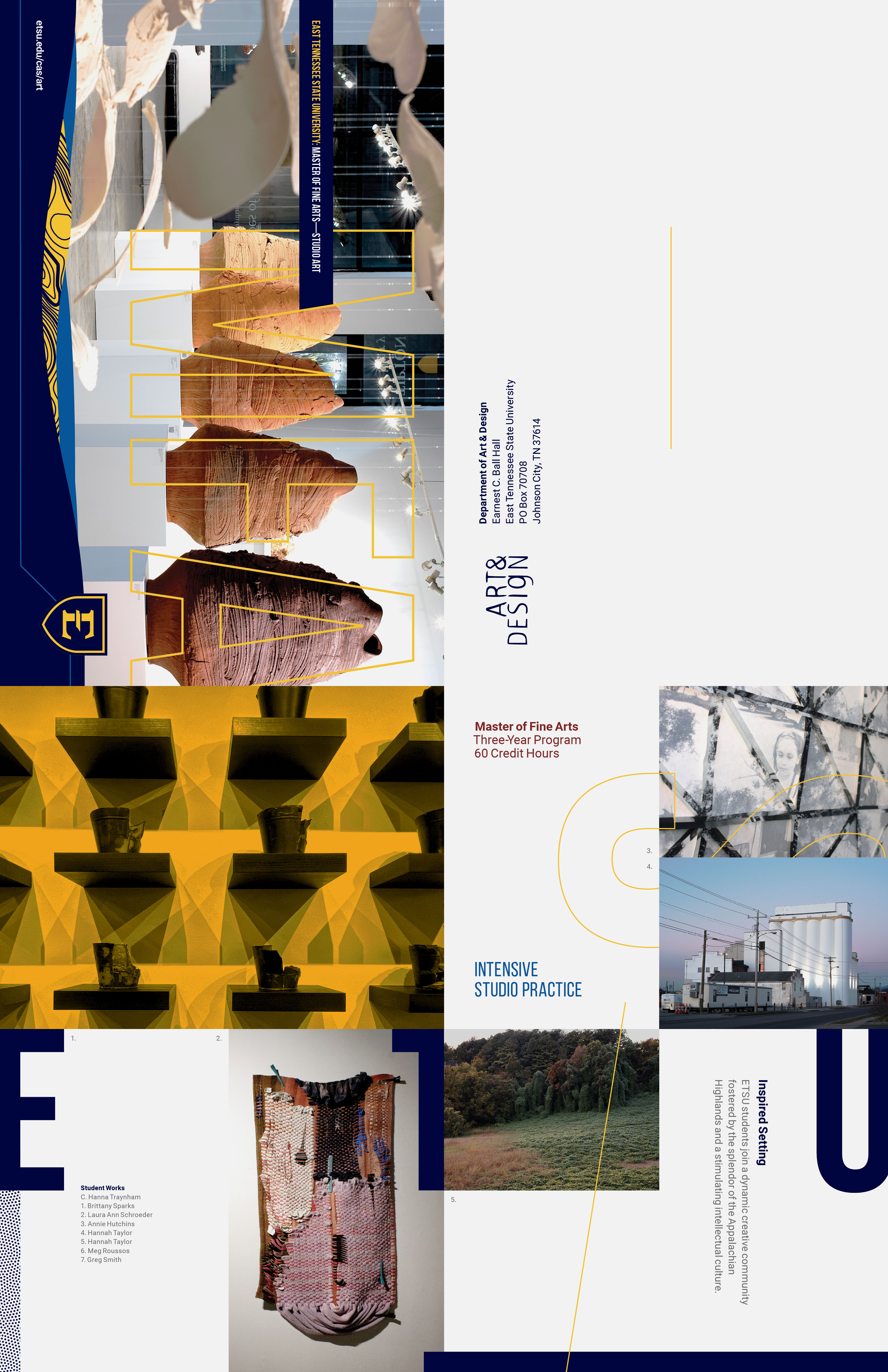 Direct mail piece designed to promote the Master of Fine Arts program in the Department of Art & Design at East Tennessee State University, sent to regional and national institutions.
